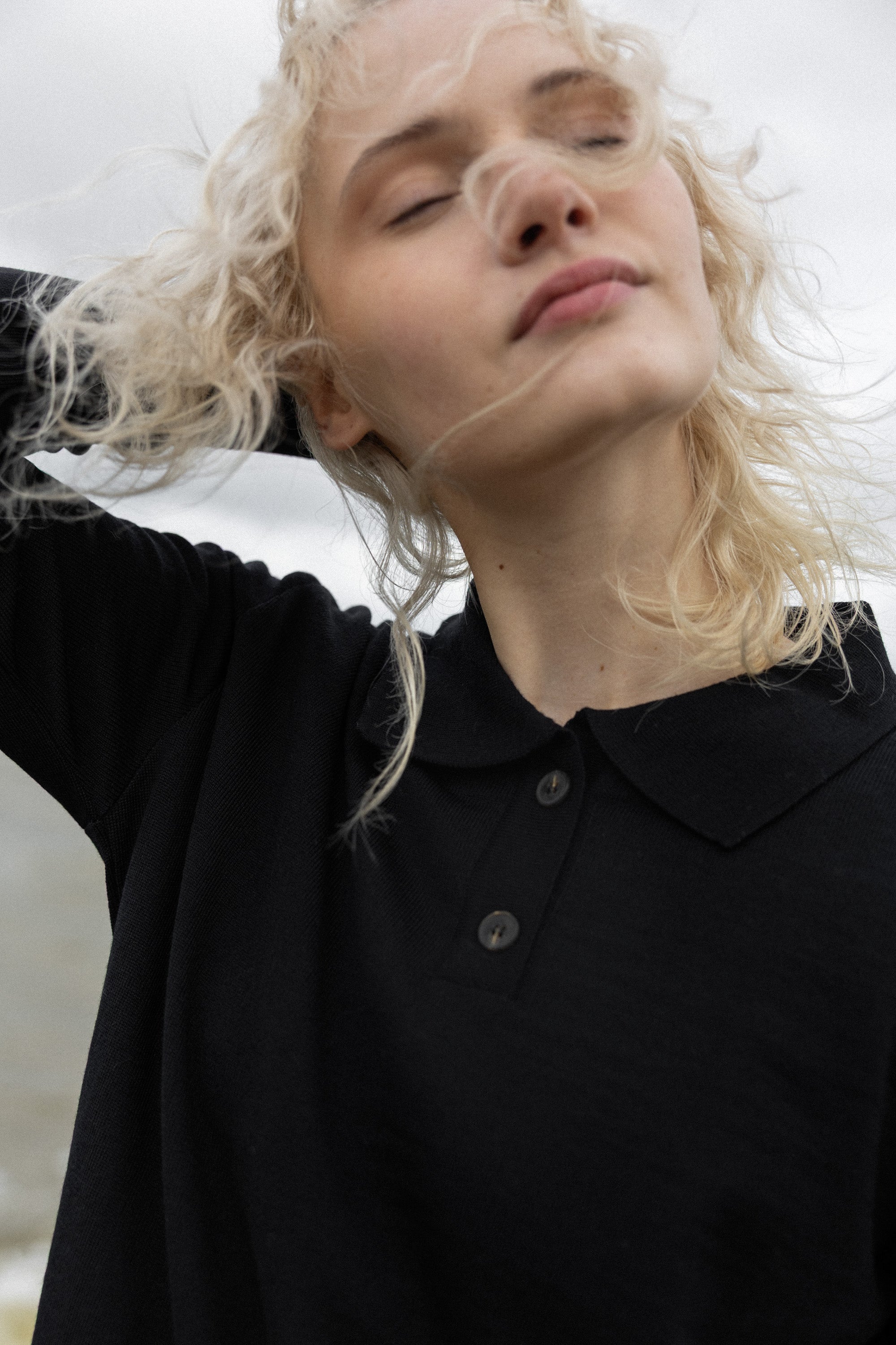 Galante polo top redefines modern elegance through simplicity. It’s designed in a relaxed fit with long sleeves and a classic polo collar.