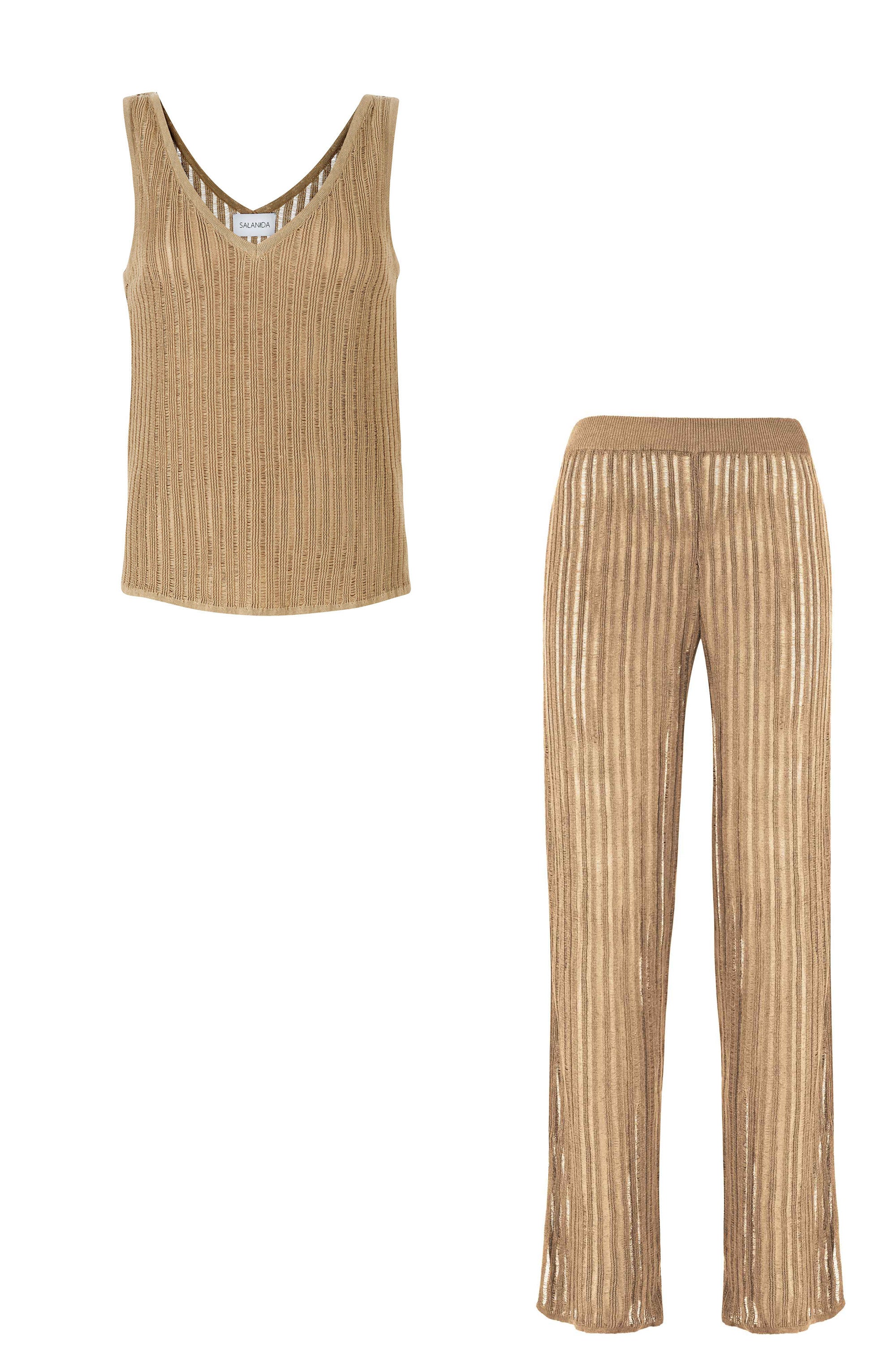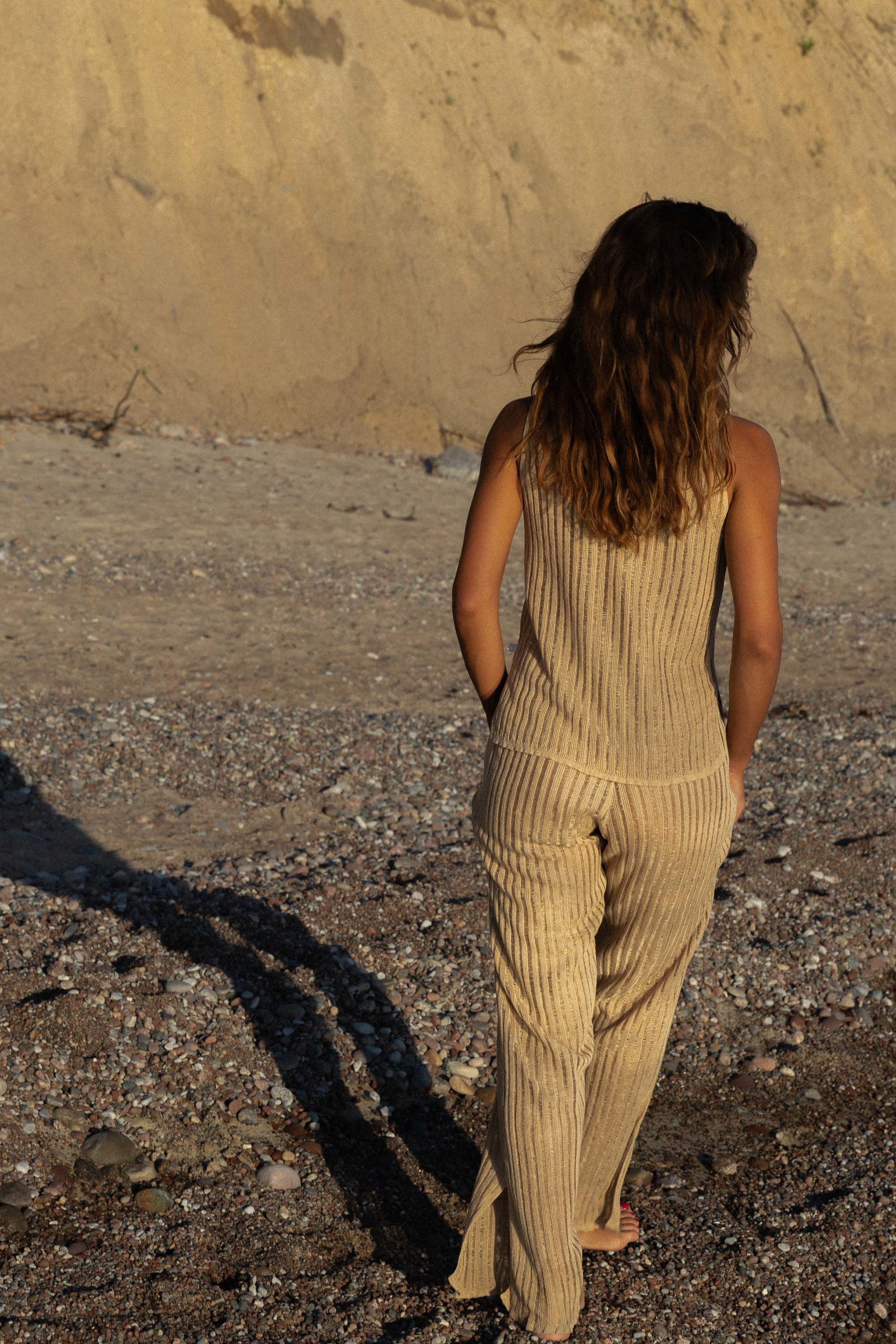 Lightweight and delicately sheer this set has a breezy summer feel. These pieces are knitted in 100% natural linen that's ecological, anti-allergic, and forms the best microclimate for your skin.